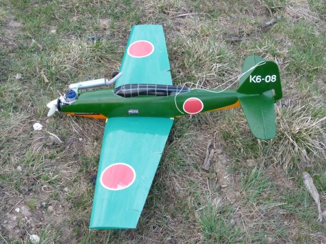 Racer AICHI M6A1 de chez Horrido CZ fuselage fibres ailes coffrées moteur super tigre g34 avion tres rapide à piloter avec doigté…… car tres trop maniable lol. Sur la photo on remarque un mvvs mais c’était pour la déco il était trop léger et le rodage tres long….??? Avec le G34 ça marche super et c’est fiable. Carburant 10% et huile de ricin. Bougie enya 4 ou 3