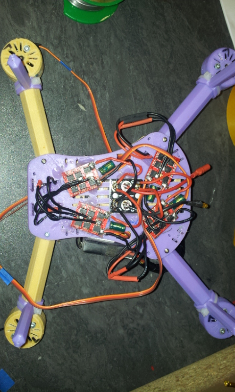 J’ai donc imprimé plusieurs « drônes » quadcoptères c’est ceux que je préfère, et après avoir pas mal ramé avec différents contrôleurs de vol type KK2.1.5,CC3D, Naza 32,gaui 334,etc et j’en passe,il m’apparait à présent que le seul matos fiable pour ce que je fait est DJI Naza. Le MV1 ou le lite enfin c’est égal c’est le top…