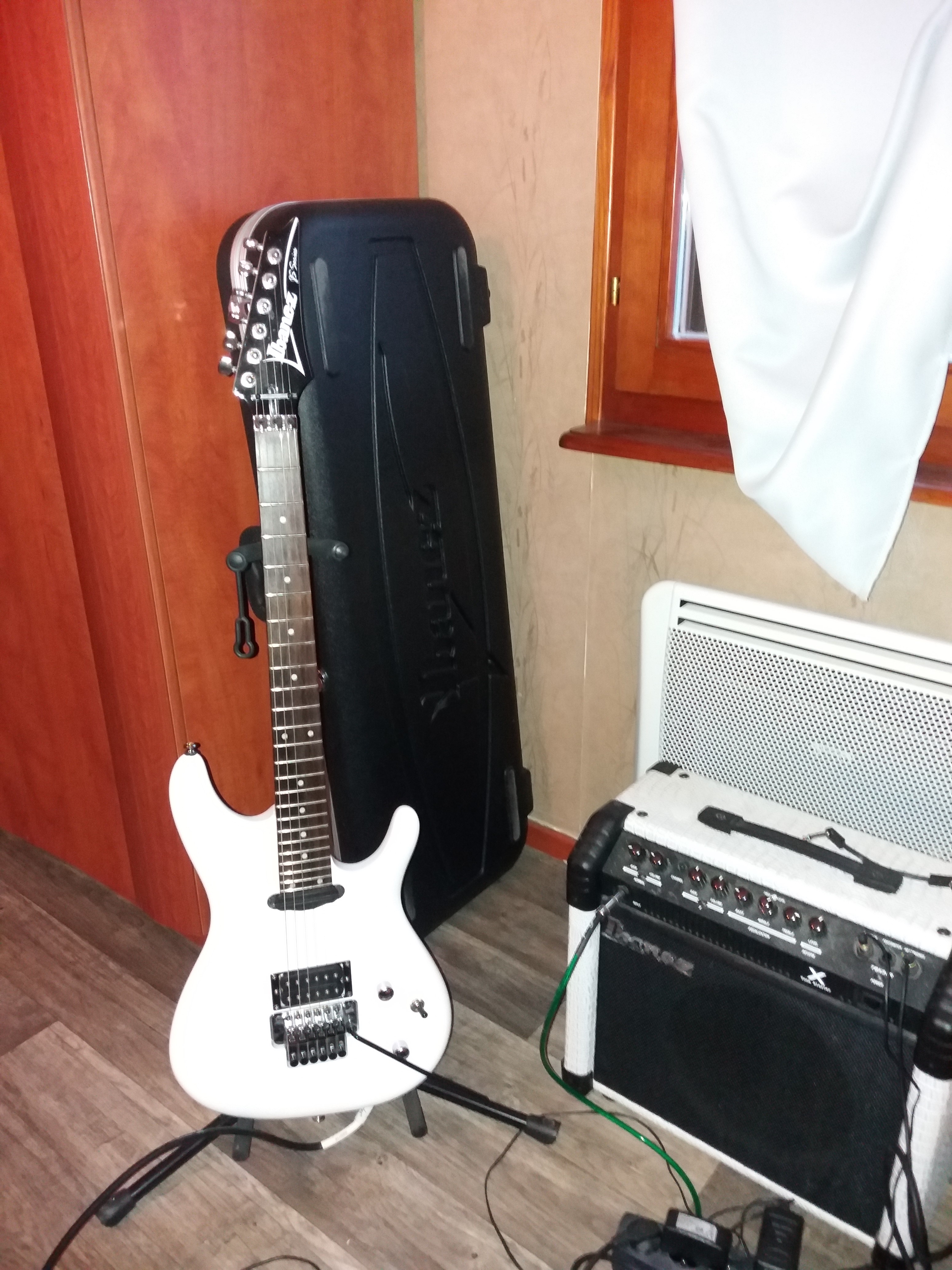 Ayant changé de groupe depuis peu les micros trop généreux (vraiment incroyables) ne sont plus vraiment en adéquations avec la musique jouée, rock-prog un peu planant ???et le manche autre pièce achetée est trop large/rond dessous et ne convient pas trop car j’ai de plus en plus d’arthrose aux doigts et bien sûr je n’utilise pratiquement plus que mes deux Ibanez. Cela reste une super guitare pour une première la chance des débutants…