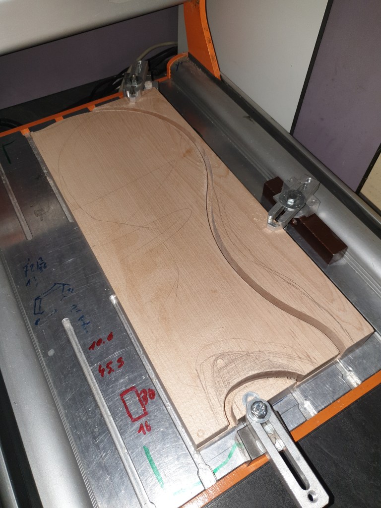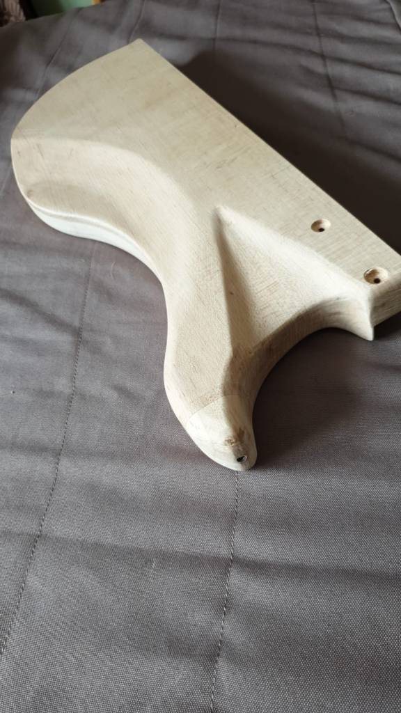 L’ensemble des fournitures est monté à une somme d’environ 500 euros en valeur neuve. La plupart des objets ayant été achetés d’occasion moitié prix. Le bois du corps par exemple en Erable Français était voué aux poubelles d’un grand atelier d’aéronautique dans mon coin. Disons que je l’ai sauvé non pas de la mort mais en quelque sorte ce bois à une seconde vie. Et vue la qualité de ce bois ce n’est que justice.