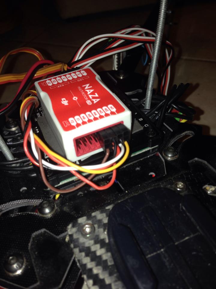 J’ai donc imprimé plusieurs « drônes » quadcoptères c’est ceux que je préfère, et après avoir pas mal ramé avec différents contrôleurs de vol type KK2.1.5,CC3D, Naza 32,gaui 334,etc et j’en passe,il m’apparait à présent que le seul matos fiable pour ce que je fait est DJI Naza. Le MV1 ou le lite enfin c’est égal c’est le top…