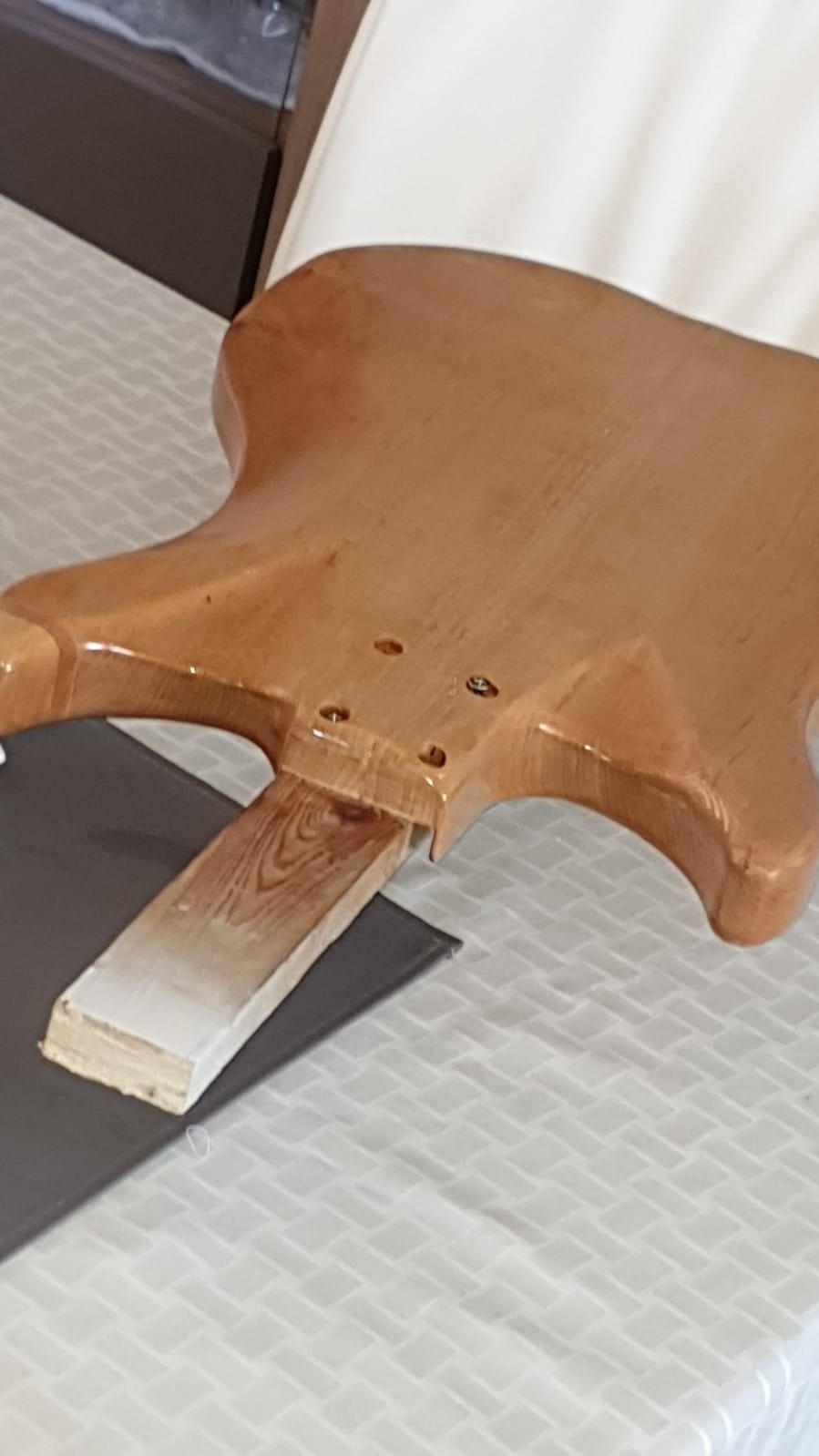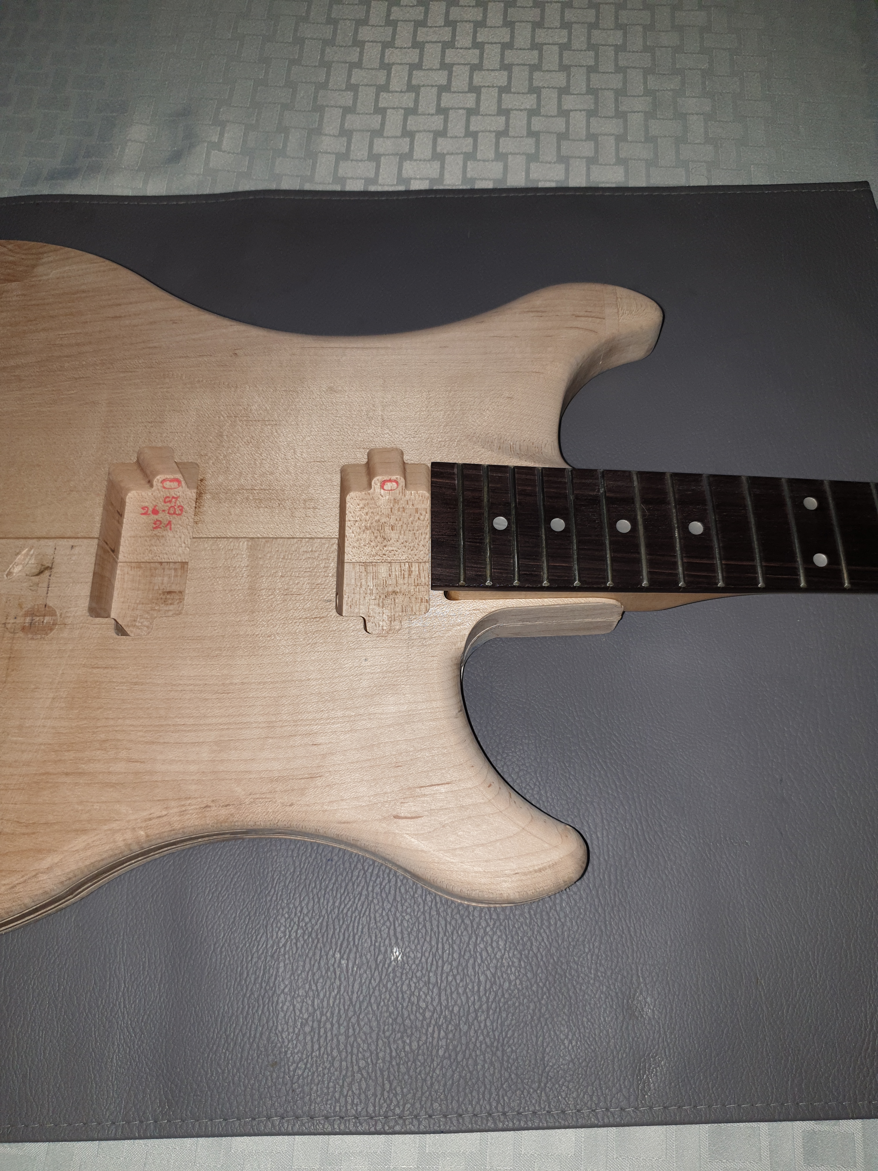 Voila bien sûr ici ne figurent que quelques photos sur de trop nombreuses . Mais cette guitare commencée le 15 Mars de cette année 2021 et pour passer le temps, (covid oblige) sera toujours un souvenir pour moi et de moi…